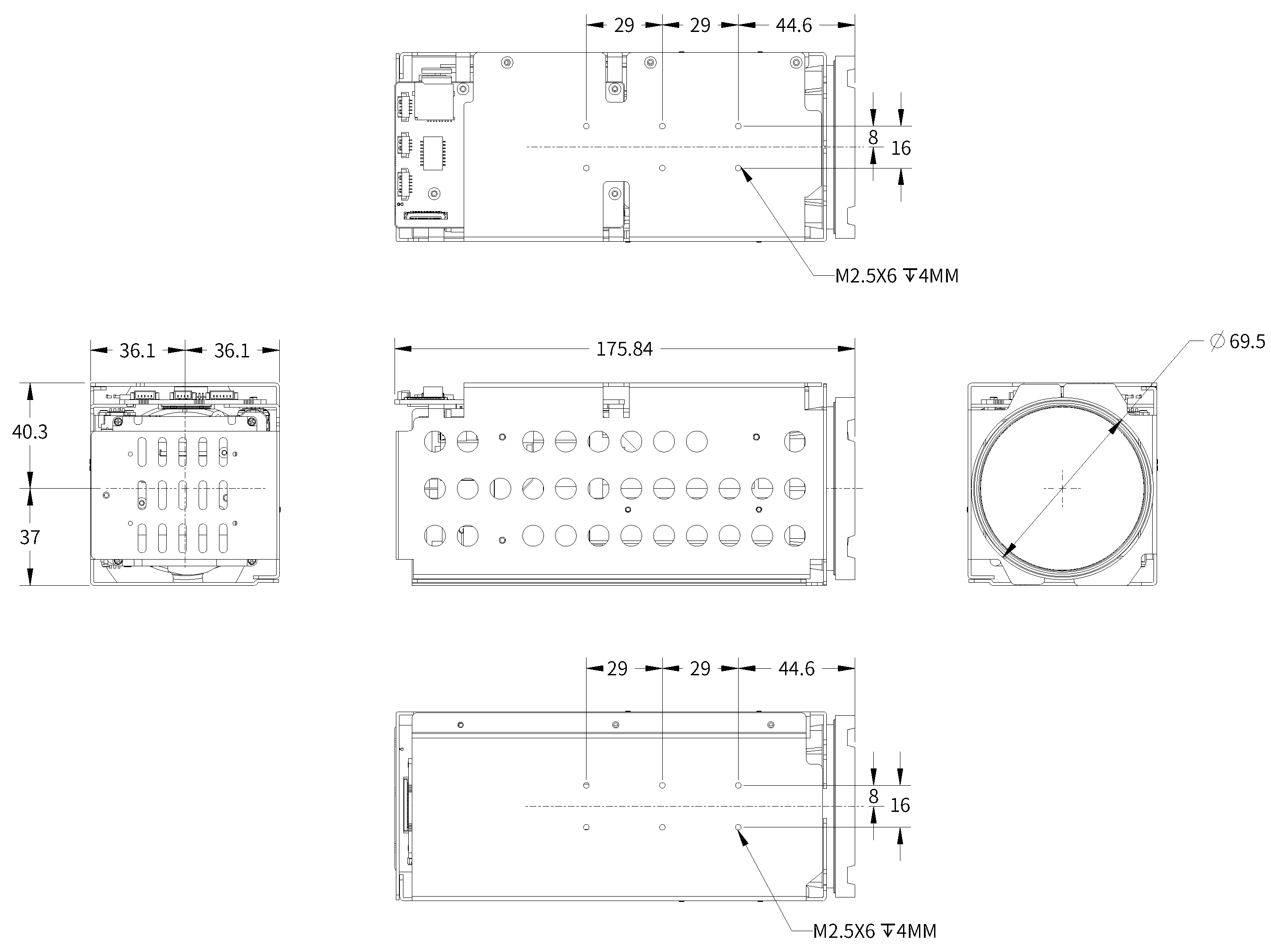 4Pin Etherneti port, 6pin Power & UART port, 5pin helisadam. 30pin mipi |